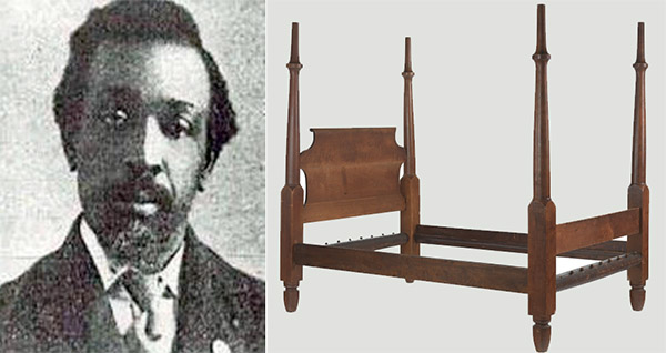 Carpentry was another common trade for African-American skilled workers, and furniture makers formed a kind of elite within this group, enjoying higher wages and status. Henry Boyd (1802–1886), a Cincinnati furniture maker, derived much of his success from his invention of the Boyd bedstead — a wooden bed frame designed so that its wooden rails could be screwed into the headboard and the footboard simultaneously, thus creating a stronger frame. Boyd’s personal history suggests the kind of determination it took for a black person to make a success in business. In the first place, he had been apprenticed to a cabinet maker as a slave boy, but worked nights in a salt-processing plant to gain the money he needed to buy his freedom. Once in Cincinnati, he hired himself out as a laborer until he was able to form a house building partnership with a white carpenter, and that business provided the funds with which to buy his brother and sister out of slavery. By 1836 he owned his own bedstead factory, where he employed up to 50 workers and used steam-powered machinery. He was burned out by arsonists twice, and rebuilt his business both times, selling most of his beds in the south and southwest. Boyd did not patent his improvement, instead resorting to identifying his beds with a stamp that bore his name — a mark that now gives special value to collectors of the region’s furniture.