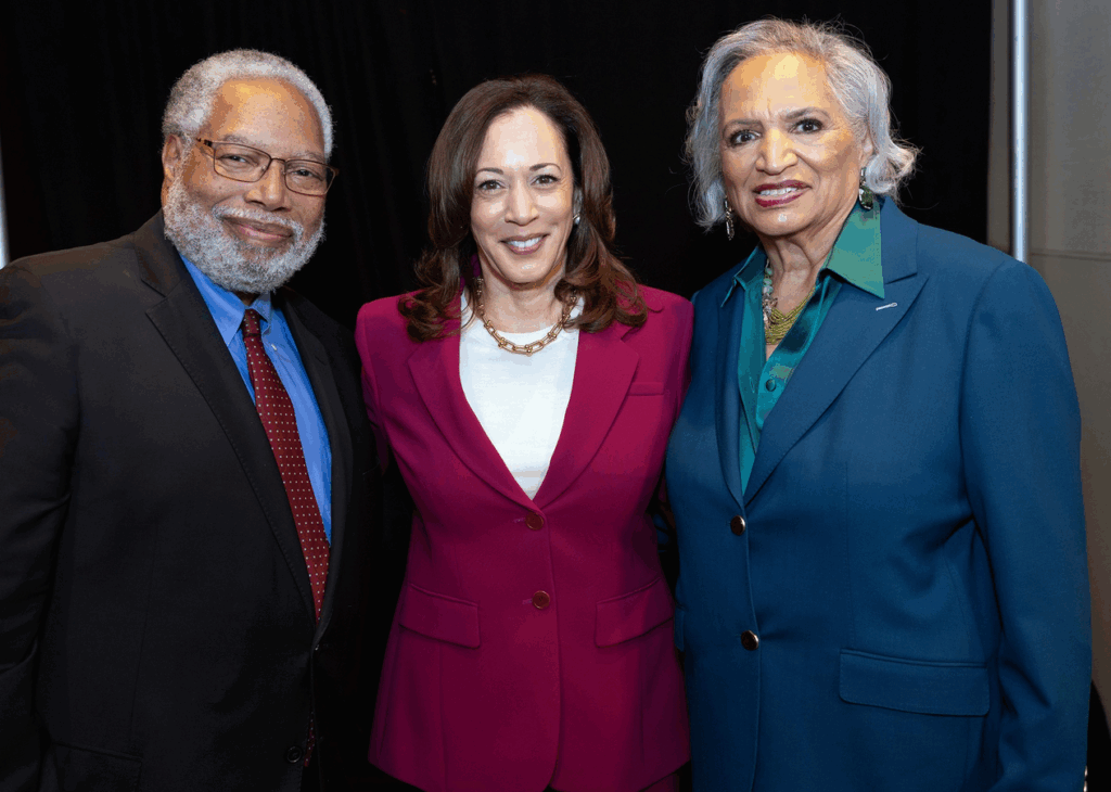 Lonnie G. Bunch III, Secretary of the Smithsonian Institution and recipient of the BWA Dolly Desselle Adams President’s Award, stands with former Vice President Kamala Harris and Gwainevere Catchings-Hess, president of The Black Women’s Agenda, Inc.